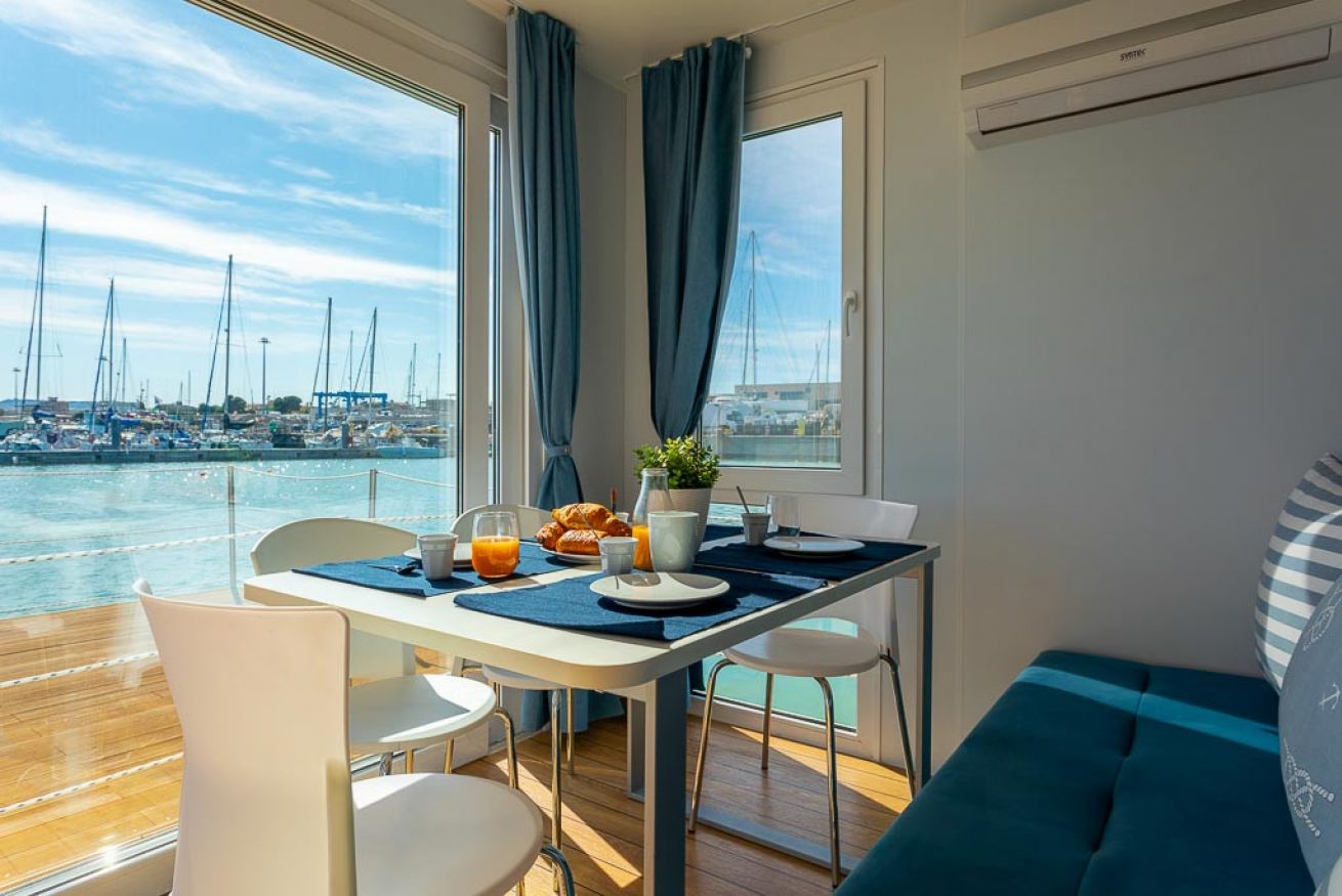Le house boat sono dotate di tutti i comfort, 2 camere da letto ( doppia letti singoli e matrimoniale), bagno completo, cucina completa attrezzata con stoviglie, soggiorno e veranda esterna con salottino.